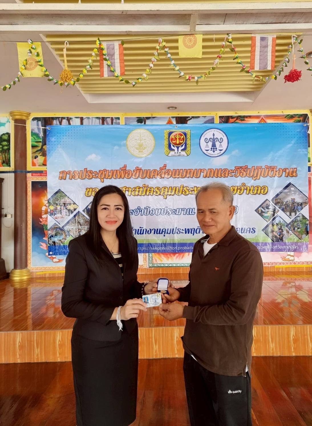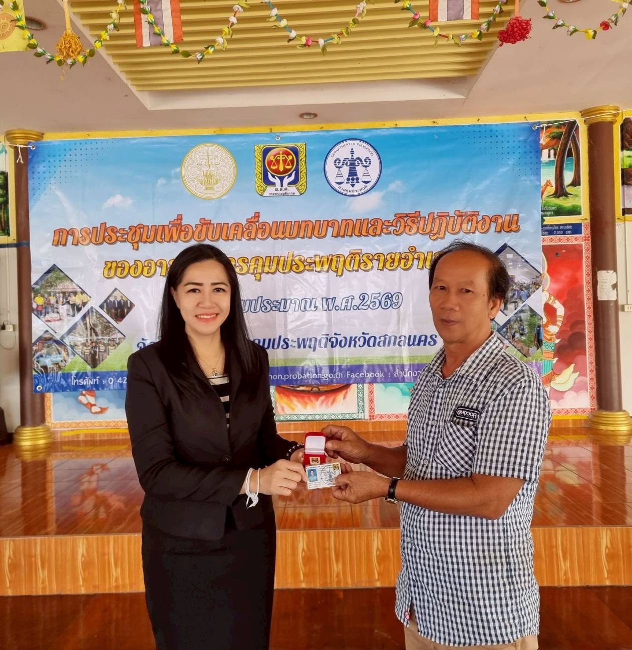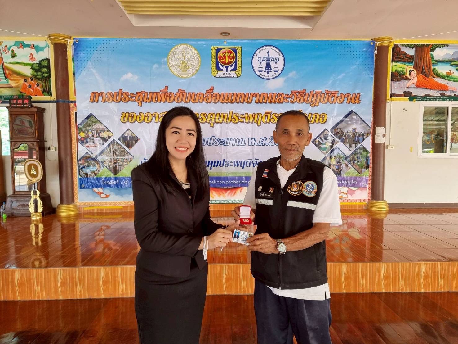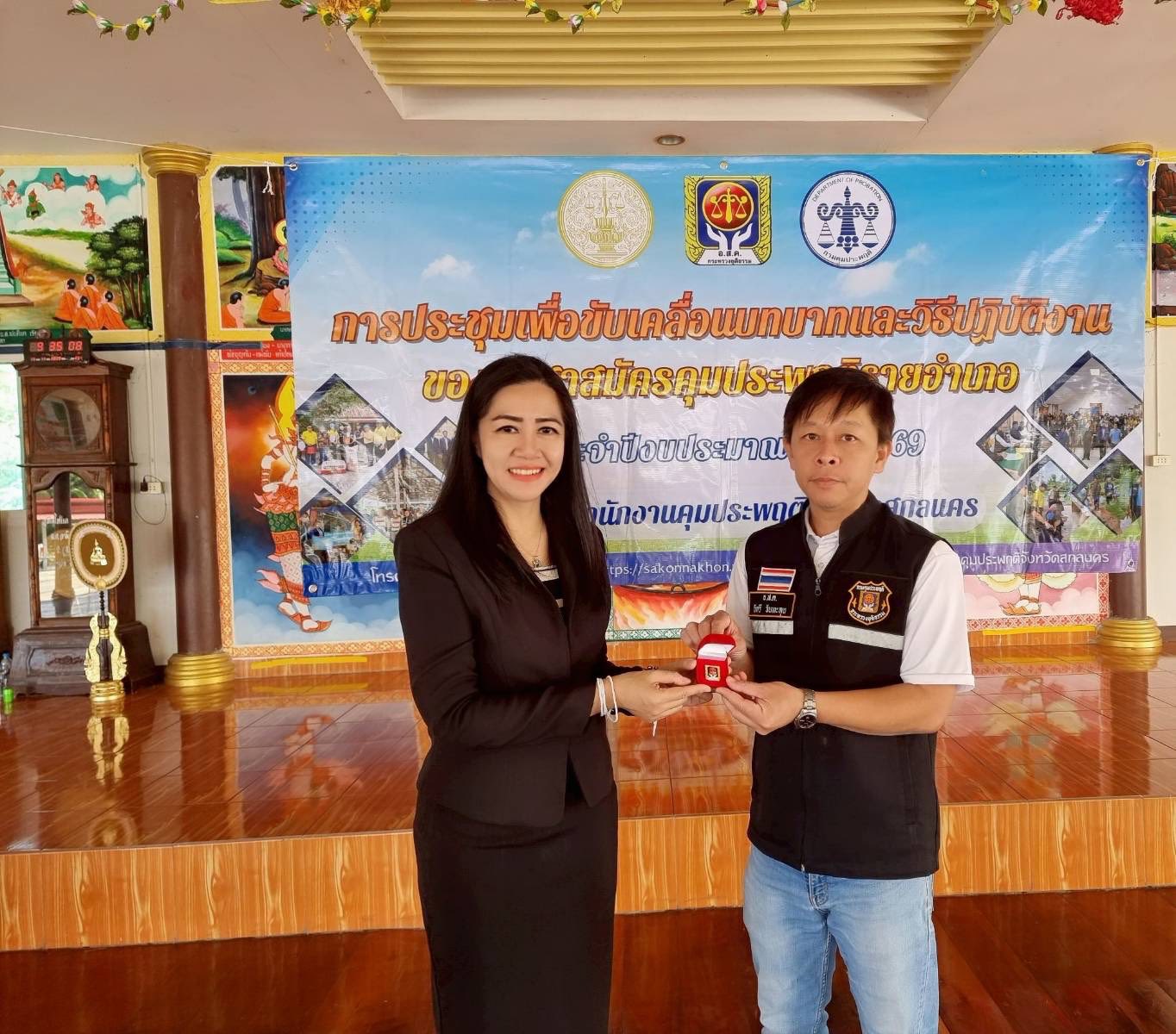 วันนี้ 14 พฤศจิกายน 2568 นางสาวสายฝน จันทะพรม ผู้อำนวยการสำนักงานคุมประพฤติจังหวัดสกลนครพร้อมด้วย นางสาวพนิดา พละเดช รองผู้อำนวยการสำนักงานคุมประพฤติ และหัวหน้ากลุ่มยุทธศาสตร์การคุมประพฤติลงพื้นที่อำเภอเต่างอย จังหวัดสกลนคร จัดการประชุมขับเคลื่อนบทบาทและวิธีการทำงานของอาสาสมัครคุมประพฤติรายอำเภอเป็นอำเภอที่ 6 ในปีงบประมาณ พ.ศ. 2569 ณ วัดวัดศิริมังคละเต่างอย อำเภอเต่างอย โดยมีนายจีระวัฒน์ งอยภูธรประธานอาสาสมัครคุมประพฤติอำเภอเต่างอย พร้อมด้วยอาสาสมัครคุมประพฤติในพื้นที่จำนวน 10 คน ร่วมการประชุมโอกาสนี้ ผู้อำนวยการสำนักงานคุมประพฤติจังหวัดสกลนคร ได้มอบเข็มอาสาสมัครคุมประพฤติผู้ปฏิบัติงานมา 25 ปีให้กับ นายวารี อินทสิทธิ์ และมอบเข็มอาสาสมัครคุมประพฤติ พร้อมบัตรประจำตัวอาสาสมัครคุมประพฤติเพื่อเชิดชูเกียรติและเป็นขวัญกำลังใจในการทำงานให้กับอาสาสมัครคุมประพฤติอำเภอเต่างอย