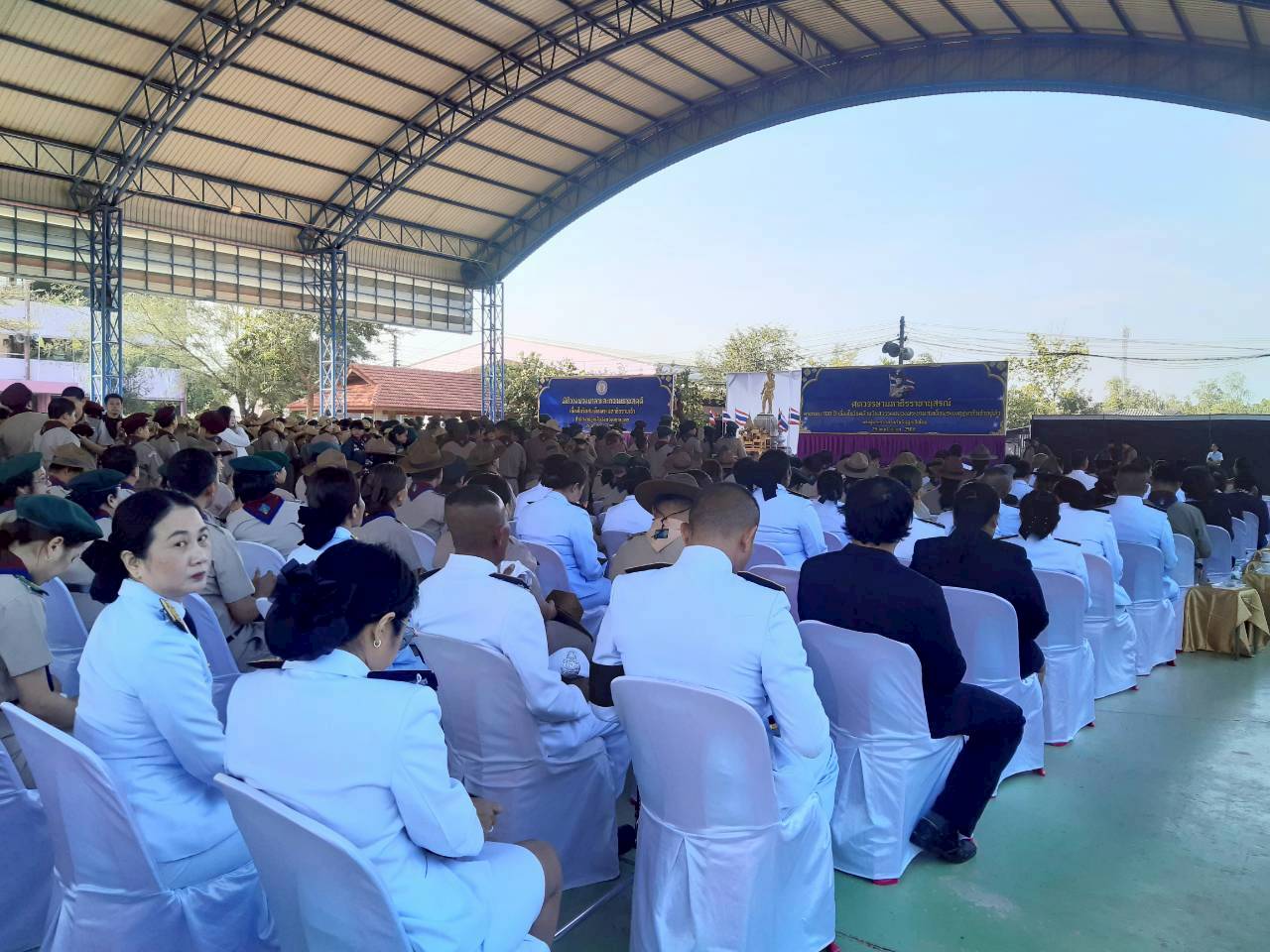 วันนี้ 25 พฤศจิกายน 2568 นางสาวสายฝน จันทะพรม ผู้อำนวยการสำนักงานคุมประพฤติ มอบหมาย กลุ่มกิจกรรมที่ 5 เข้าร่วมพิธีวางพวงมาลาและถวายราชสดุดี เนื่องใน "วันสมเด็จพระมหาธีรราชเจ้า" ประจำปี 2568 โดยมี นายวีรรัตน์ ธีรมิตร รองผู้ว่าราชการจังหวัดสกลนคร เป็นประธานในพิธี พร้อมด้วยผู้เข้าร่วมพิธีกว่า 1,000 คน ประกอบด้วยผู้บังคับบัญชาลูกเสือ ลูกเสือ เนตรนารี จากโรงเรียนในสังกัดสำนักงานเขตพื้นที่การศึกษาประถมศึกษา สกลนคร เขต ๑ เขต ๒ เขต ๓, สำนักงานเขตพื้นที่การศึกษามัธยมศึกษาสกลนคร, เทศบาลนครสกลนคร, องค์การ บริหารส่วนจังหวัดสกลนคร,สำนักงานคุมประพฤติจังหวัดสกลนคร, สำนักงานคณะกรรมการอาชีวศึกษา และสำนักงาน ส่งเสริมการเรียนรู้ประจำจังหวัดสกลนคร เพื่อแสดงความจงรักภักดีและน้อมรำลึกในพระมหากรุณาธิคุณอันหาที่สุดมิได้ ณ โรงเรียนสกลนครพัฒนาศึกษา อำเภอเมืองสกลนคร จังหวัดสกลนคร