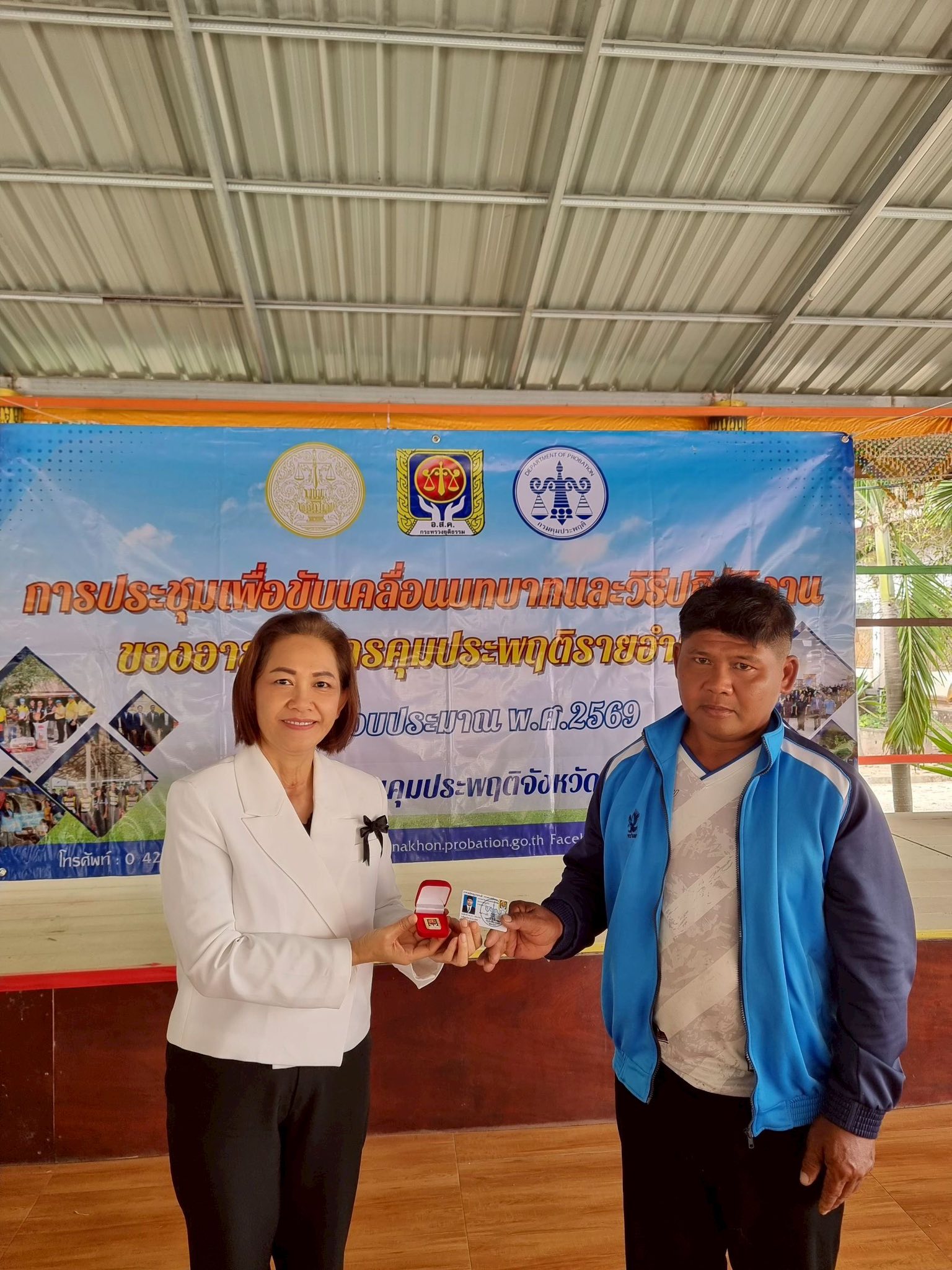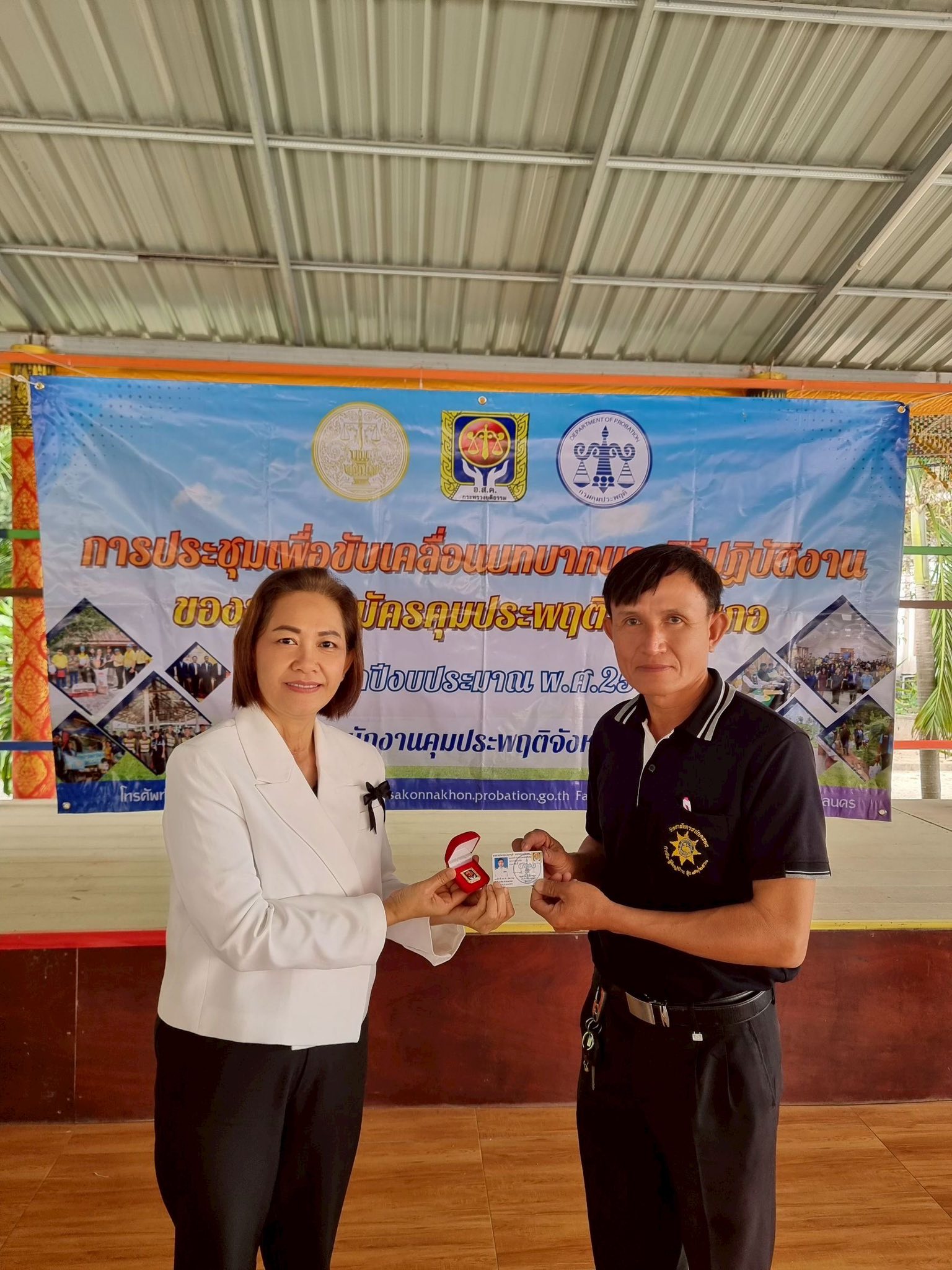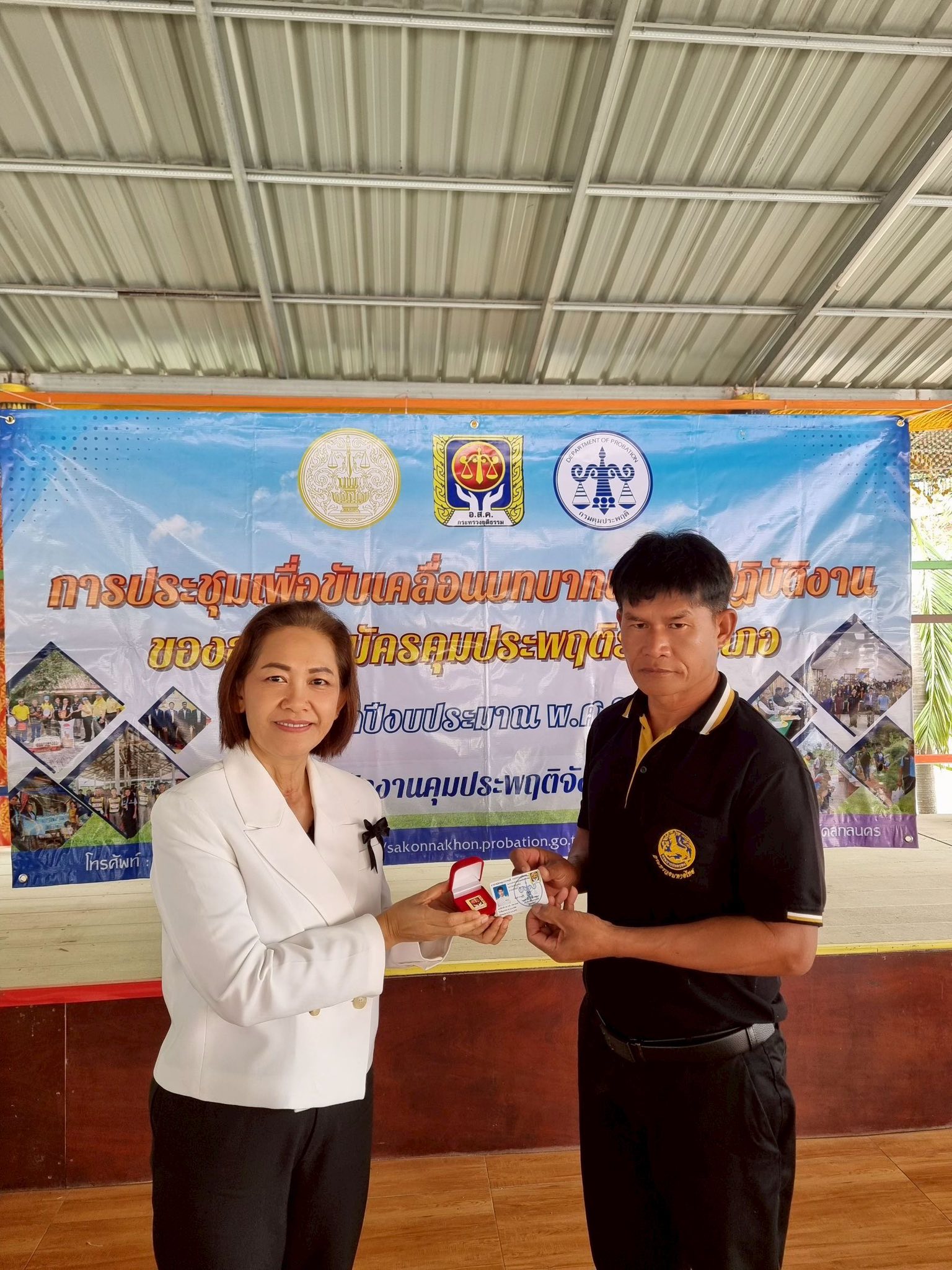 วันนี้ 12 ธันวาคม 2568 นางสาวสายฝน จันทะพรม ผู้อำนวยการสำนักงานคุมประพฤติจังหวัดสกลนคร มอบหมายนางสาวพนิดา พละเดช รองผู้อำนวยการสำนักงานคุมประพฤติ และพนักงานคุมประพฤติงานยุทธศาสตร์ฯ จัดการประชุมขับเคลื่อนบทบาทและวิธีปฏิบัติงานของอาสาสมัครคุประพฤติรายอำเภอ ประจำปีงบประมาณ พ.ศ. 2569 ในอำเภอกุดบากและนิคมน้ำอูน 2 อำเภอสุดท้ายภายใต้แผนขับเคลื่อนบทบาทอาสาสมัครคุมประพฤติรายอำเภอปี 2569 ณ ศูนย์ประสานงานอาสาสมัครคุมประพฤติอำเภอกุดบาก (วัดเทพวิสุทธาราม) อำเภอกุดบาก จังหวัดสกลนคร อ.ส.ค.ได้ร่วมนำเสนอแนวทางเพื่อขับเคลื่อนบทบาทของอาสาสมัครคุมประพฤติโดยมีความพร้อมในการดูแลสอดส่องและรับคดีจากสำนักงานคุมประพฤติ แม้เป็นคดีที่มีความเสี่ยงหรือมีความรุนแรงก็พร้อมที่จะใช้องค์ความรู้ เทคนิค ทักษะที่ได้อบรมมาจากสำนักงานฯ มาปรับใช้ในการปฏิบัติงาน รวมถึงบางคนเป็นผู้นำชุมชน เป็น อสม. ซึ่งจะมีความใกล้ชิดและรู้จักคนในชุมชนเป็นอย่างดี โดยสำนักงานฯ เน้นย้ำถึงความสำคัญของอาสาสมัครคุมประพฤติเป็นอย่างยิ่งเนื่องจากพื้นที่ อำเภอกุดบากและนิคมน้ำอูน ในบางหมู่บ้านมีระยะทางที่ไกลซึ่งหาก ไม่ได้รับการสนับสนุนช่วยเหลือจากอาสาสมัครคุมประพฤติในพื้นที่ในการติดตาม การควบคุมสอดส่องแล้วมีความยากในการปฏิบัติงานค่อนข้าง โอกาสเดียวกันนี้ นางสาวพนิดา พละเดช ได้มอบเข็อาสาสมัครคุมประพฤติ และบัตรประจำตัวอาสาสมัครคุมประพฤติให้กับอาสาสมัครคุมประพฤติที่ได้รับการแต่งตั้งใหม่และที่บัตรครบอายุ