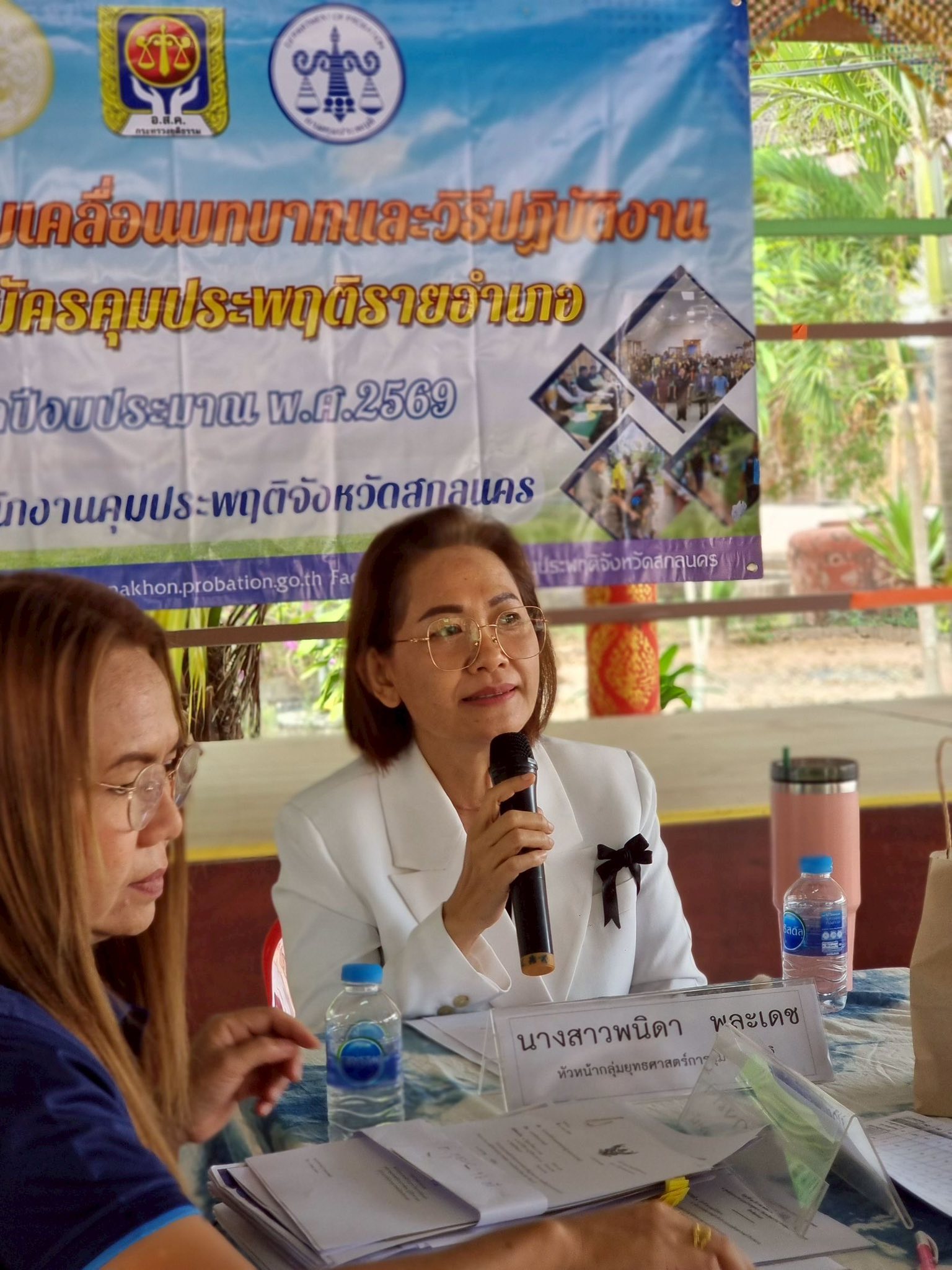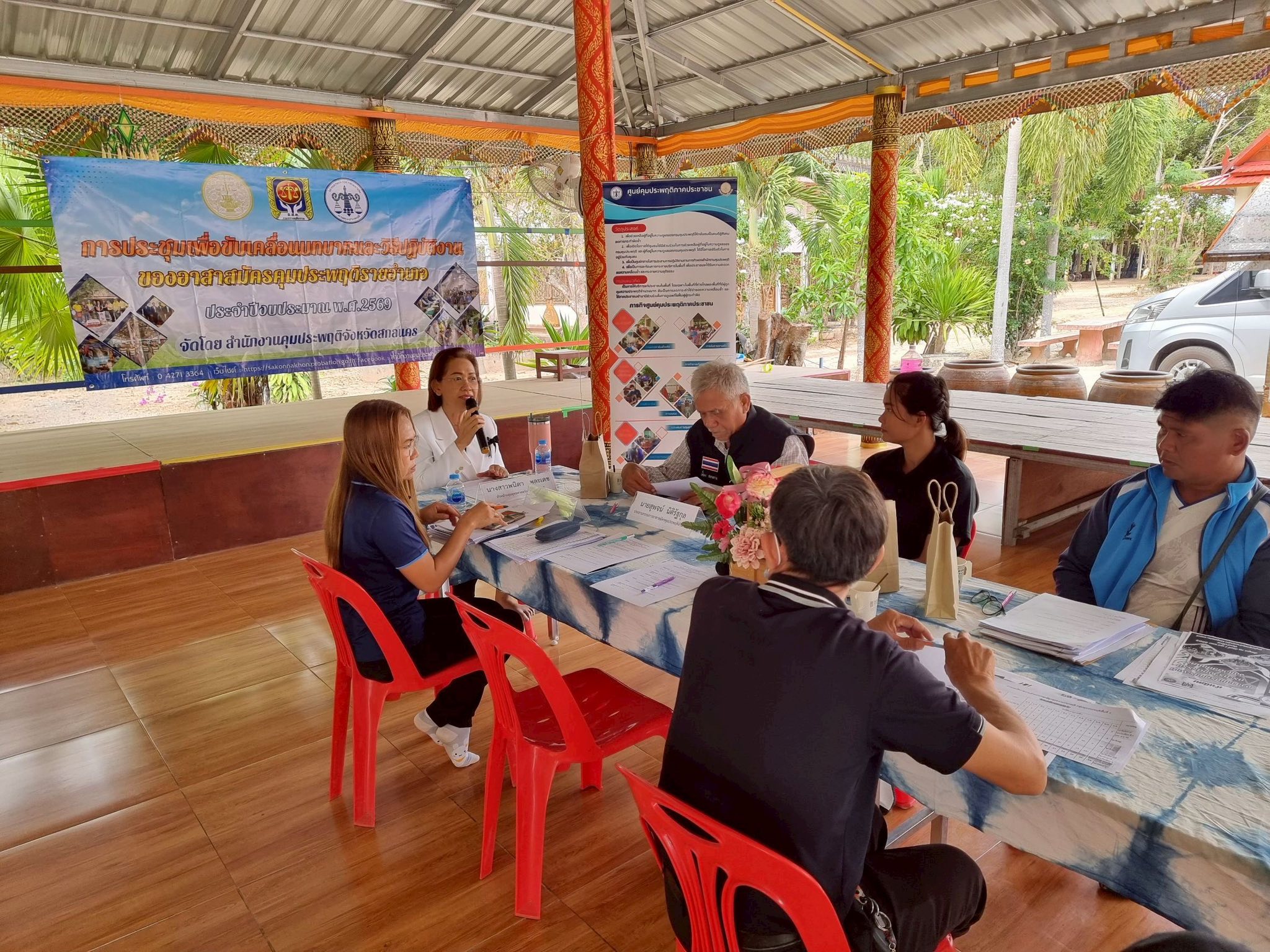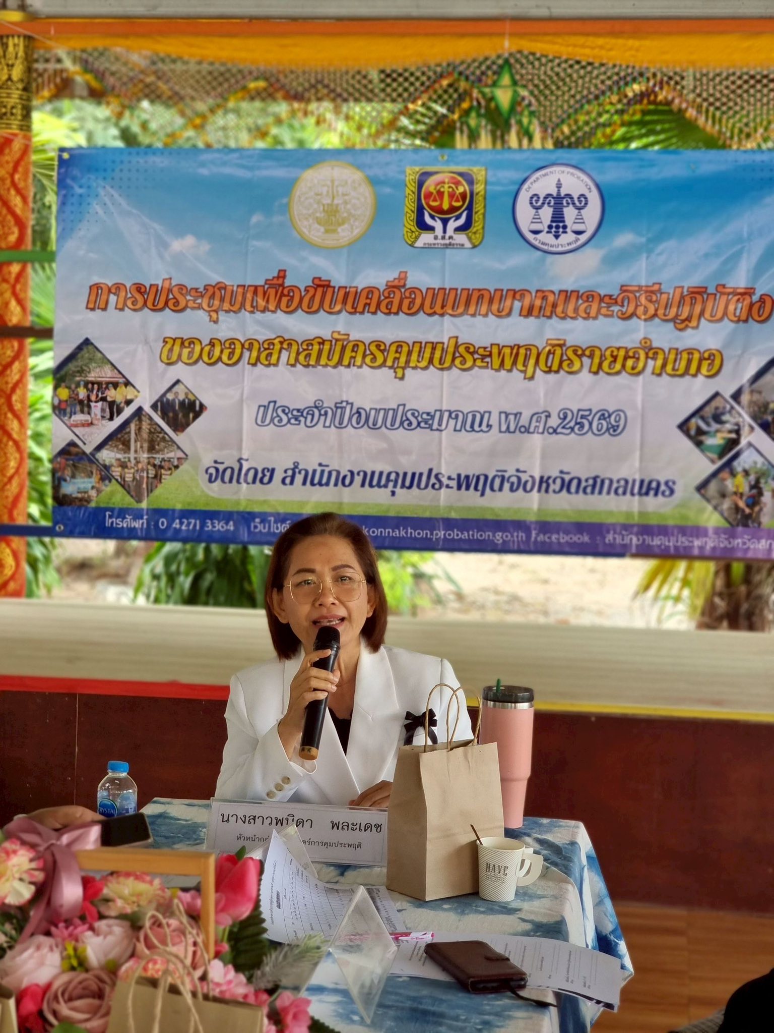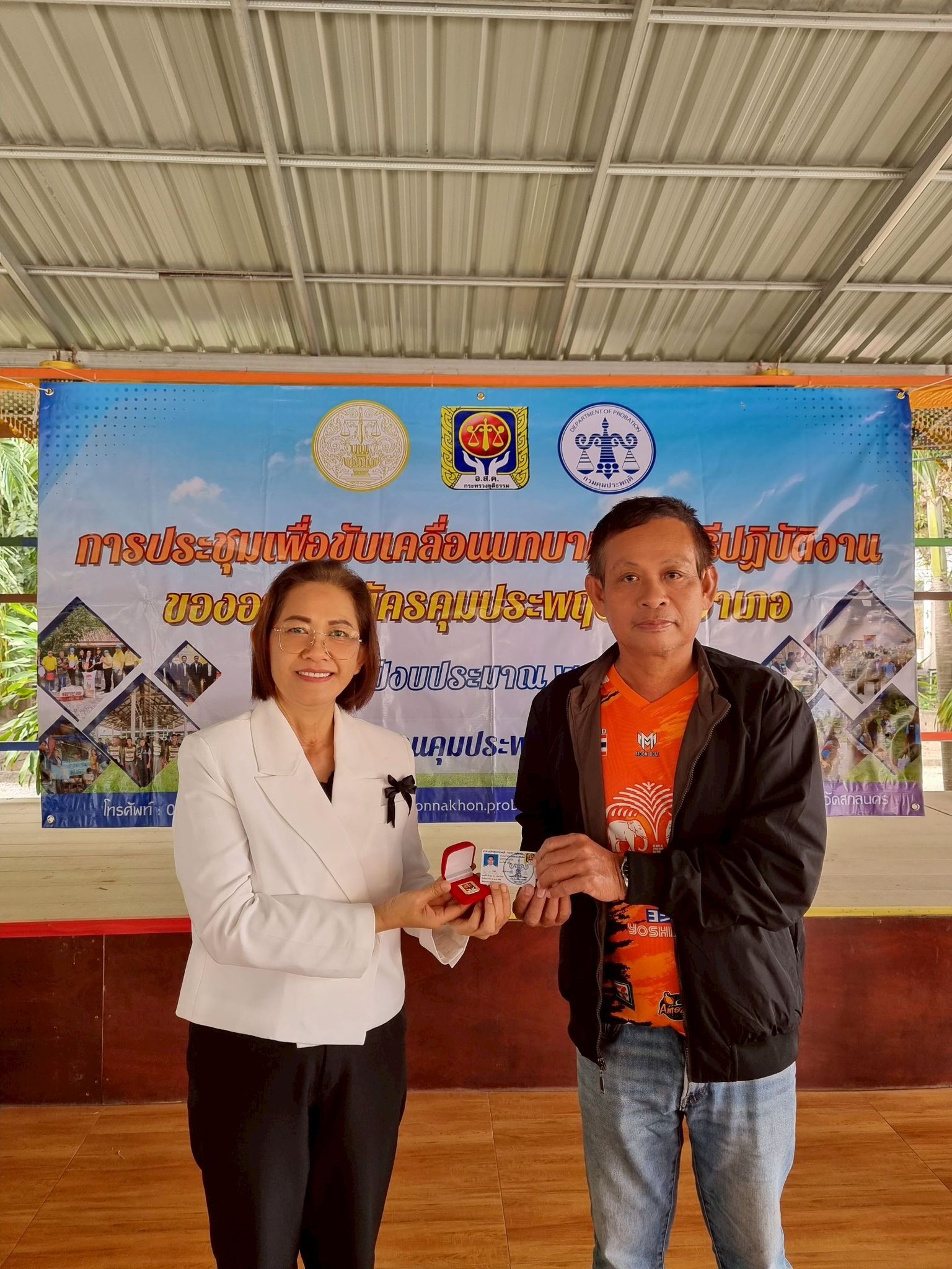 วันนี้ 12 ธันวาคม 2568 นางสาวสายฝน จันทะพรม ผู้อำนวยการสำนักงานคุมประพฤติจังหวัดสกลนคร มอบหมายนางสาวพนิดา พละเดช รองผู้อำนวยการสำนักงานคุมประพฤติ และพนักงานคุมประพฤติงานยุทธศาสตร์ฯ จัดการประชุมขับเคลื่อนบทบาทและวิธีปฏิบัติงานของอาสาสมัครคุประพฤติรายอำเภอ ประจำปีงบประมาณ พ.ศ. 2569 ในอำเภอกุดบากและนิคมน้ำอูน 2 อำเภอสุดท้ายภายใต้แผนขับเคลื่อนบทบาทอาสาสมัครคุมประพฤติรายอำเภอปี 2569 ณ ศูนย์ประสานงานอาสาสมัครคุมประพฤติอำเภอกุดบาก (วัดเทพวิสุทธาราม) อำเภอกุดบาก จังหวัดสกลนคร อ.ส.ค.ได้ร่วมนำเสนอแนวทางเพื่อขับเคลื่อนบทบาทของอาสาสมัครคุมประพฤติโดยมีความพร้อมในการดูแลสอดส่องและรับคดีจากสำนักงานคุมประพฤติ แม้เป็นคดีที่มีความเสี่ยงหรือมีความรุนแรงก็พร้อมที่จะใช้องค์ความรู้ เทคนิค ทักษะที่ได้อบรมมาจากสำนักงานฯ มาปรับใช้ในการปฏิบัติงาน รวมถึงบางคนเป็นผู้นำชุมชน เป็น อสม. ซึ่งจะมีความใกล้ชิดและรู้จักคนในชุมชนเป็นอย่างดี โดยสำนักงานฯ เน้นย้ำถึงความสำคัญของอาสาสมัครคุมประพฤติเป็นอย่างยิ่งเนื่องจากพื้นที่ อำเภอกุดบากและนิคมน้ำอูน ในบางหมู่บ้านมีระยะทางที่ไกลซึ่งหาก ไม่ได้รับการสนับสนุนช่วยเหลือจากอาสาสมัครคุมประพฤติในพื้นที่ในการติดตาม การควบคุมสอดส่องแล้วมีความยากในการปฏิบัติงานค่อนข้าง โอกาสเดียวกันนี้ นางสาวพนิดา พละเดช ได้มอบเข็อาสาสมัครคุมประพฤติ และบัตรประจำตัวอาสาสมัครคุมประพฤติให้กับอาสาสมัครคุมประพฤติที่ได้รับการแต่งตั้งใหม่และที่บัตรครบอายุ